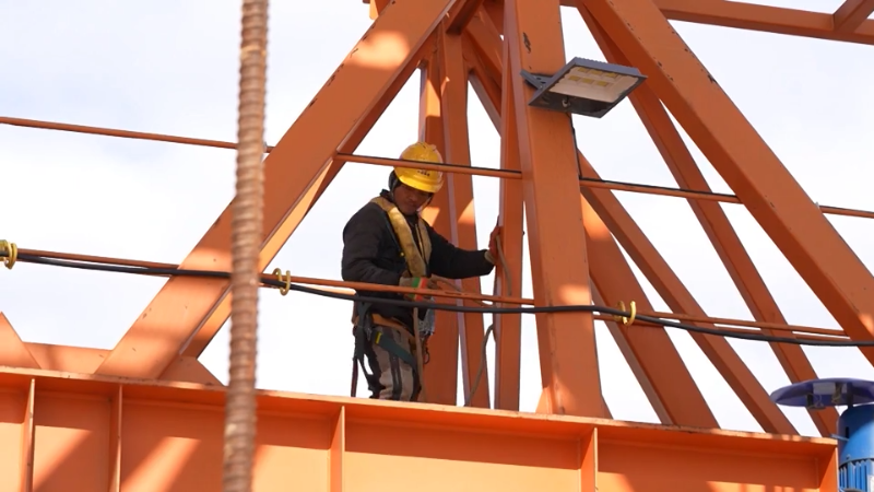 距离甬舟铁金塘海底地道工地约40公里,六横公大桥二期工程现场同样机械轰鸣。节段梁吊拆功课正正在高空紧行,工人张金良熟练操做设备,精准对位、平稳落位,每一个步调都敷衍了事。